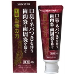 ●「サンスター 生薬 当帰の力 PU 85g」は、口臭・ネバつきを伴う歯肉炎・歯周炎を防ぐ歯周病歯磨きです。●当帰(トウキ)エキス因る抗炎症作用、薬用塩に因るハグキ引締め作用、.塩化セチルピリジニウム(CPC)に因る殺菌作用、ビタミンEに因る血行促進作用の4つの薬用成分をバランスよく配合し、気になる自覚症状を伴う歯肉炎・歯周炎を効果的に予防することができます。●医薬部外品です。